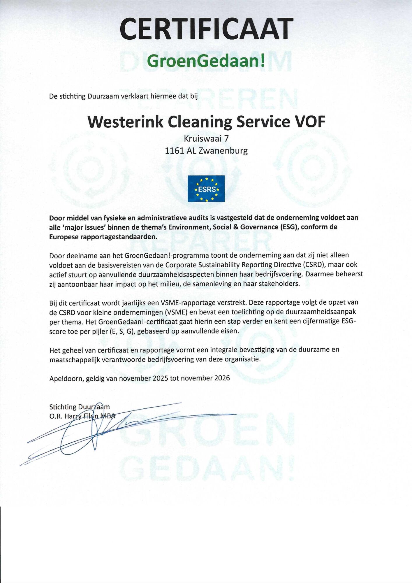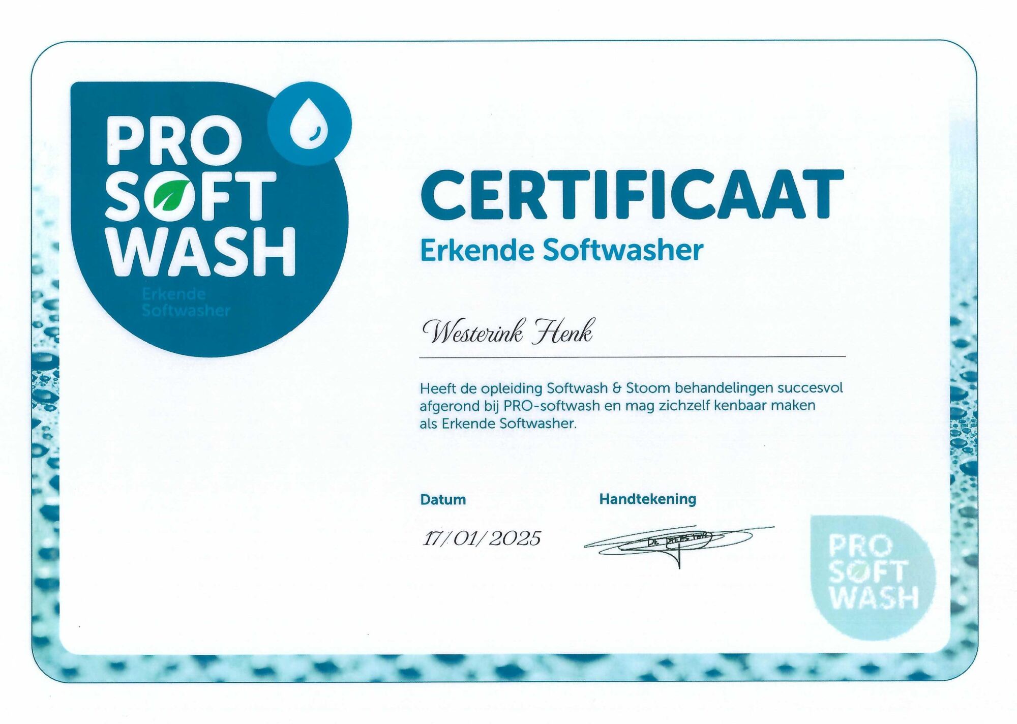 Trots mogen wij melden dat we internationaal ESG gecertificeerd zijn door Duurzaam Herstel. Met deze erkenning dragen we bij aan ons motto: duurzaam en 100% biologisch. Daarnaast zijn we experts in softwash-reiniging, een veilige en effectieve methode waarmee we uw pand of object grondig reinigen en langdurig beschermen.